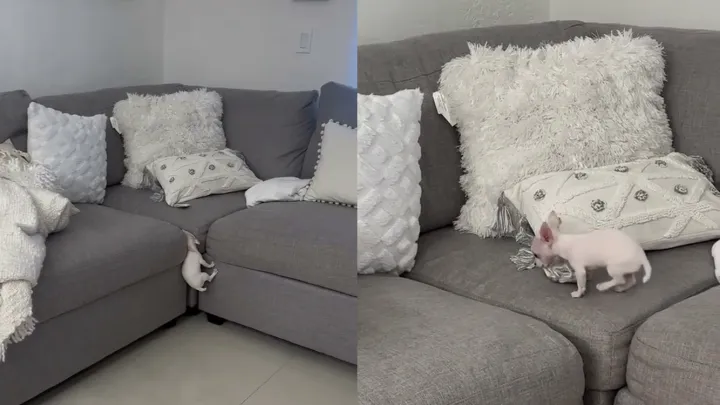 Крошечный щенок забрался на диван и доказал, что любая миссия выполнима