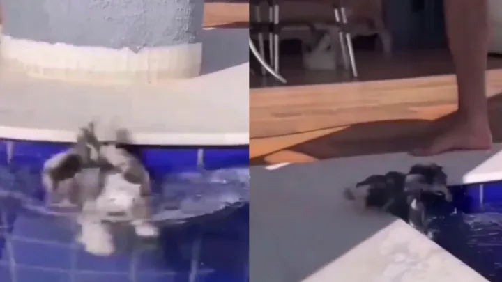 Щенок, постоянно падающий в бассейн, показал, как наступают на те же грабли