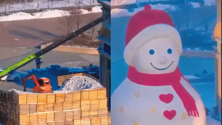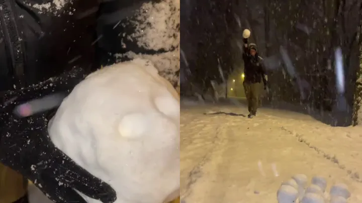 На видео сняли, что будет, если большой снежный колобок сбросить с моста в реку