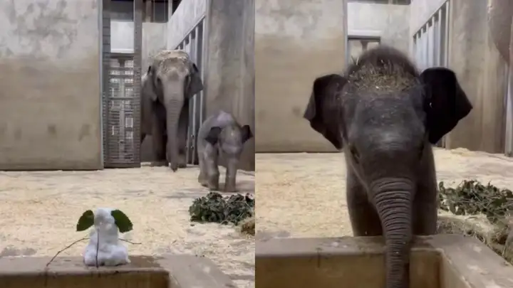 Милота дня: на видео сняли слоника, который пытается понять, что такое снег