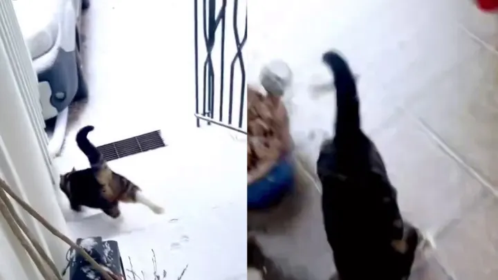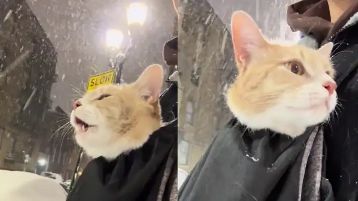 Хозяин снял на видео реакцию своего котейки на первый снег в его жизни