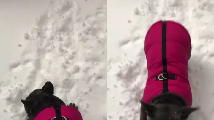 Маршрут перестроен: пес совершил полицейский разворот, оказавшись на снегу
