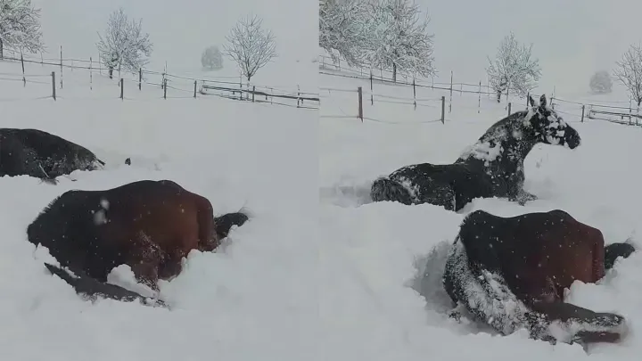 Они выбрали быть счастливыми: на видео сняли двух ворон, играющихся в снегу