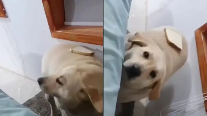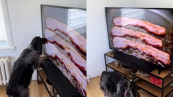Сложнейшая битва: пухлый пес попытался достать еду со своей спины