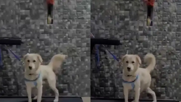 Пес, ходящий на беговой дорожке задними лапами, показал, что такое многозадачность