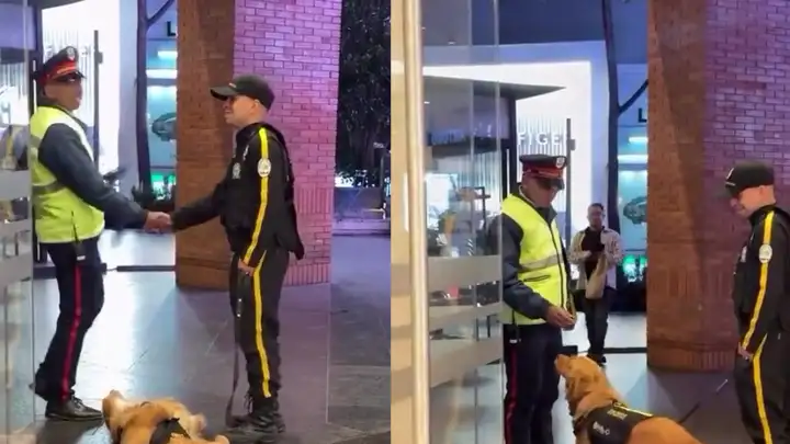 Фотограф заснял легкое удивление полицейского пса от внезапного десантирования