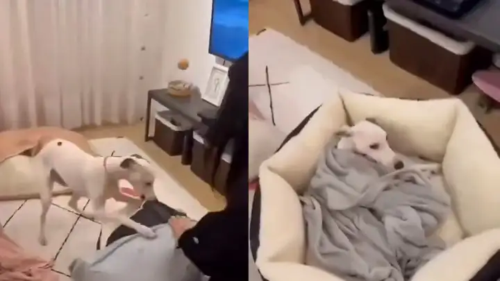Хозяйка сняла на видео реакцию своего песеля на распаковку его новой лежанки