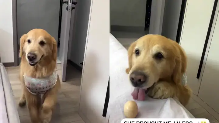 Песель эффектно принес своему хозяину куриное яйцо и был весьма горд собой