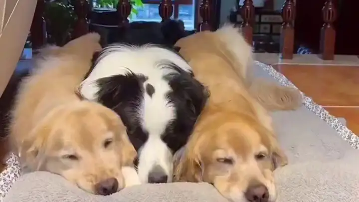 Скомплектовались: три песеля аккуратно уложились на лежанку и умилили Сеть