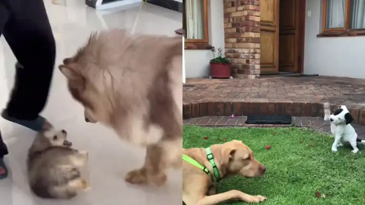 Уморительная подборка первых знакомств щенков со старшими собратьями