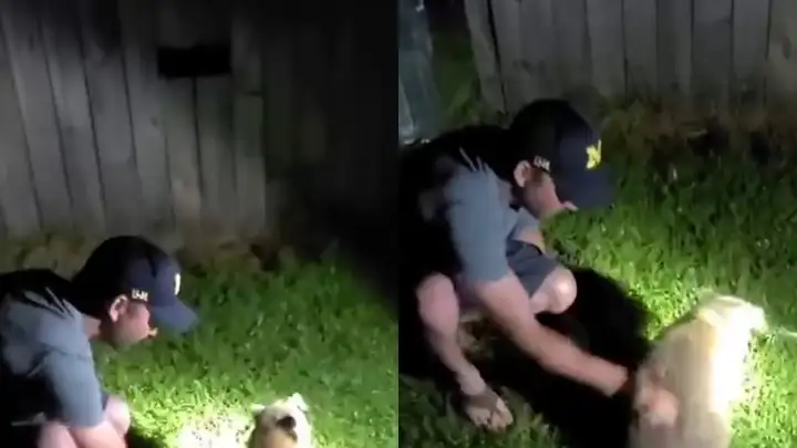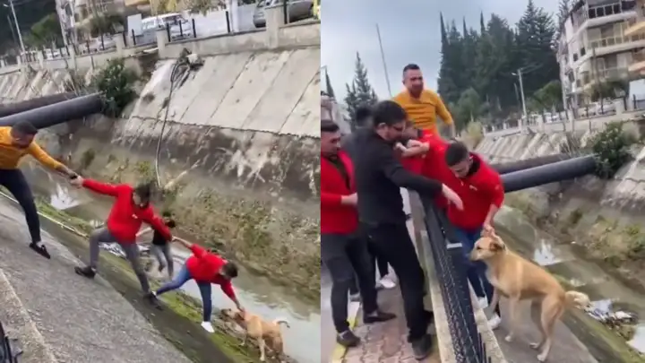 Это не дождь, а слезы: мужчины объединились, чтобы спасти пса, попавшего в беду