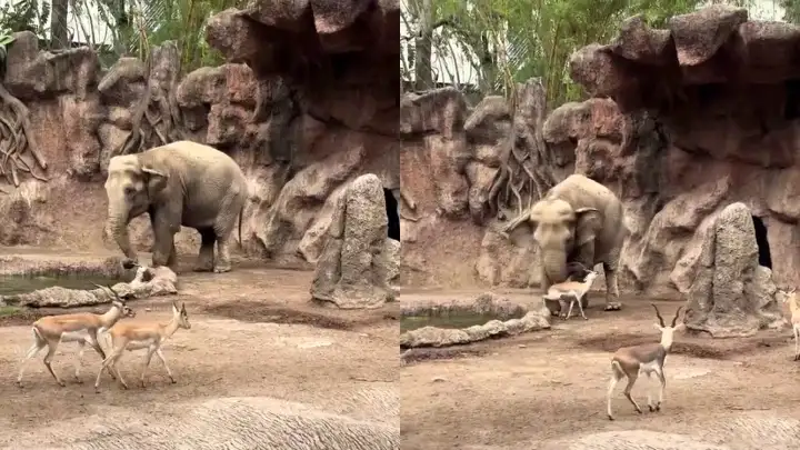 Герой дня: в зоопарке слон заметил тонущую антилопу и поспешил на помощь