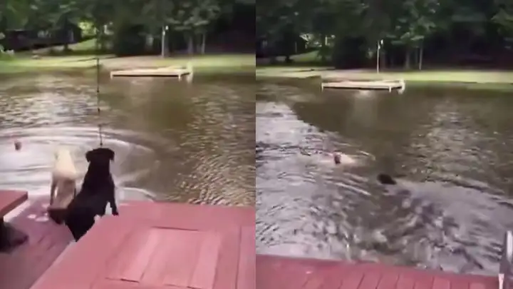 Настоящая преданность: песели бросились спасать хозяина, прыгнувшего в воду