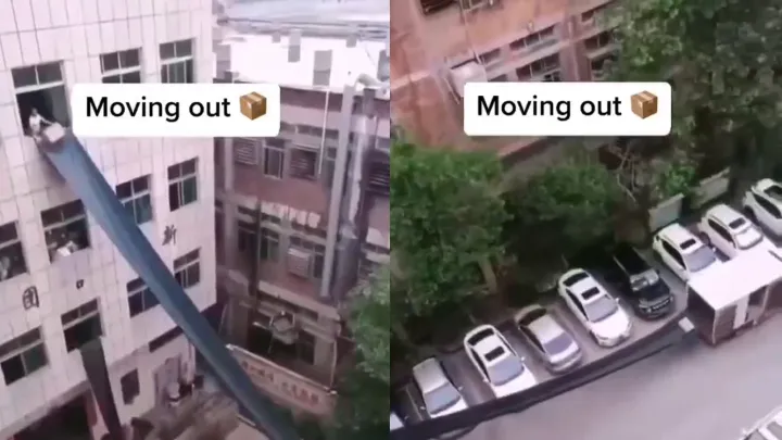 «Я у мамы инженер»: на видео попал удивительный способ экспресс-переезда Главное — полотно брать покрепче.