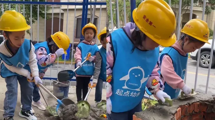 Китайский урок труда в детском саду даст фору профессиональной стройке Суровая подготовка ко взрослой жизни.