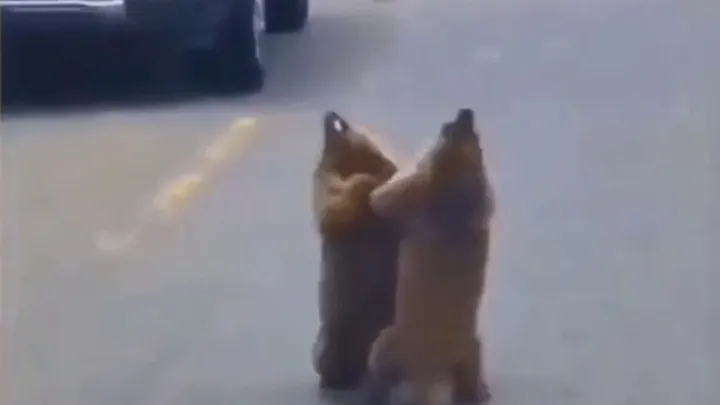 Два сурка перекрыли путь автомобилистам, начав выяснять отношения посреди дороги И пусть весь мир подождет.Два сурка сцепились в схватке, но вместо обычной битвы устроили танцевальную Непонятно, то ли болеть за кого-то, то ли аплодировать.
