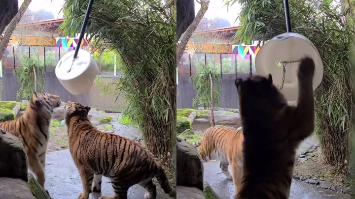Большие игрушки больших котиков: на видео сняли игры тигров в зоопарке Кто бы мог подумать, что тигры могут быть такими же милыми, как и наши домашние любимцы?Тигренок напугал свою маму и показал, что детишки везде одинаковые Даже хищники в мире животных забавляются так же, как и люди.