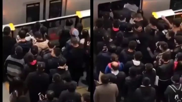 «На следующей сойдешь»: толпа затолкала мужчину обратно в поезд метро Типичная борьба за выживание в метро по утрам.
