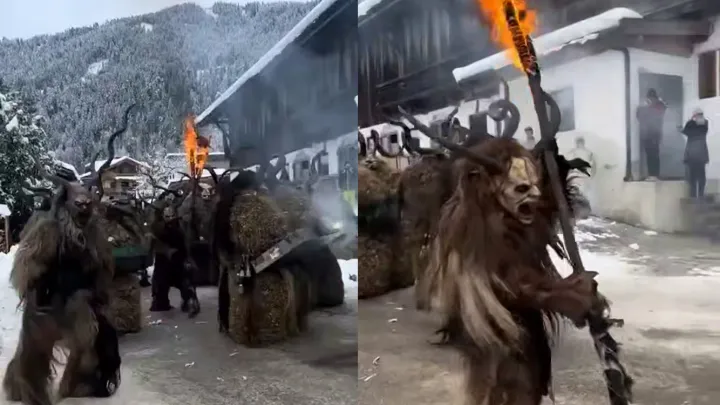 На видео сняли ежегодный рождественский парад Крампусов и Перхтенов в Австрии Жуть жуткая.На видео сняли артистку, исполняющую традиционное персидское выступление Сама Выглядит как эффектный ритуал.
