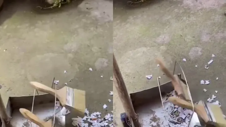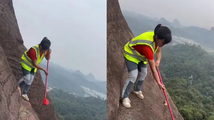 Уборщица подмела отвесную скалу и заставила зрителей сжаться от страха