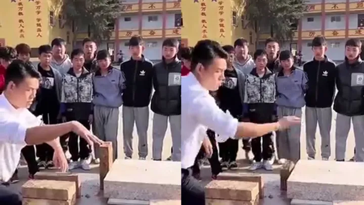 Гольфист разыгрывает других игроков, создавая ощущение сильнейшего удара по мячу Для этого он всего лишь прячет хлопушку между мячом и клюшкой.Бывший инструктор спецназа КНР показывает удар Брюса Ли, и он невероятен Восхитительно.