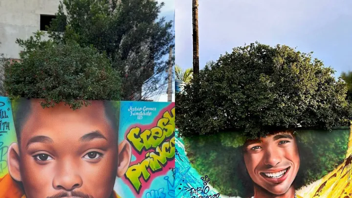Художник использует природные парики для своих уличных портретов на стенах Бразильский художник Фабио Гомеш Триндаде смешал урбанизм и природу в своих уличных фресках