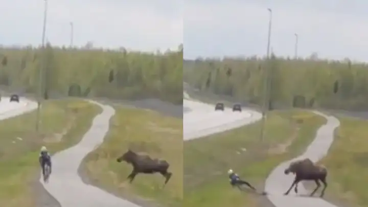 «Я сам»: велосипедист решил самоустраниться, увидев бегущую на него лосиху-мать Перестраховался.Велосипедист снял на экшен-камеру свой экстремальный велоспуск по узкой лестнице «Задержите дыхание для просмотра».