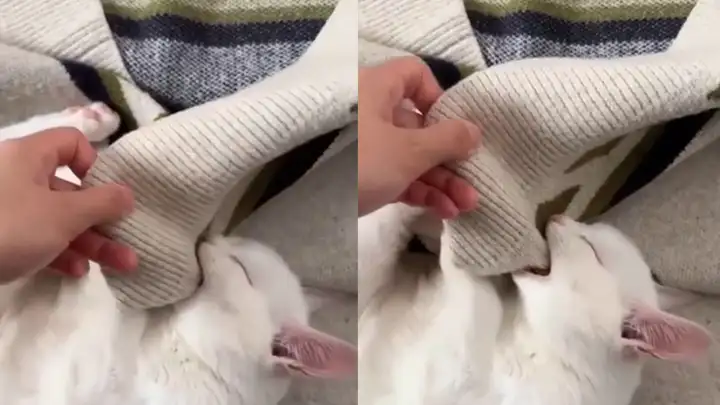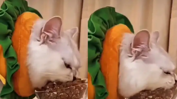 Мегакусь: на видео сняли котика со зверским аппетитом и огромным ртом