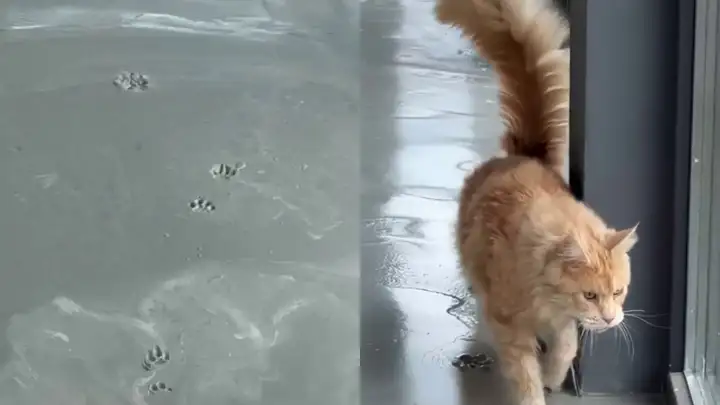 Пойман с поличным: котофей прогулялся по свежезалитому бетонному полу