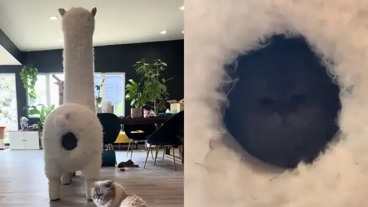 Хозяин купил своим котикам домик-когтеточку в виде ламы и вызвал истерику в Сети