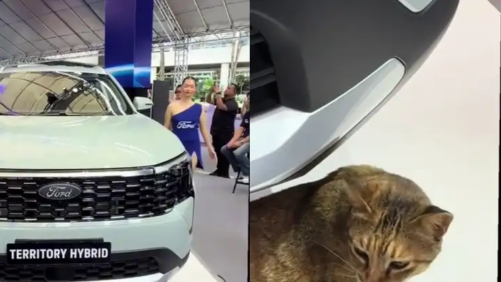 На презентации нового Ford на Филиппинах все внимание украл лежащий под авто кот