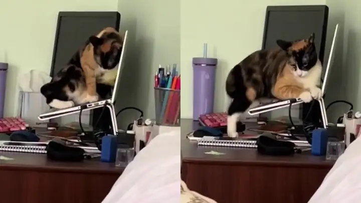 «Наташ, неудобную лежанку купила»: кот попытался улечься на ноутбук под наклоном