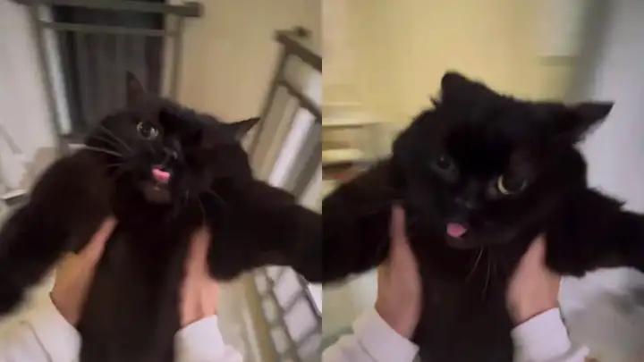 «Ты меня пугаешь!»: хозяйка сняла на видео ее перепалку с взбесившимся котом