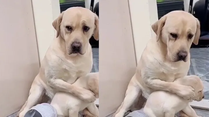 «Своих ругай, моего не трогай!»: собака защитила щенка от тапка хозяина