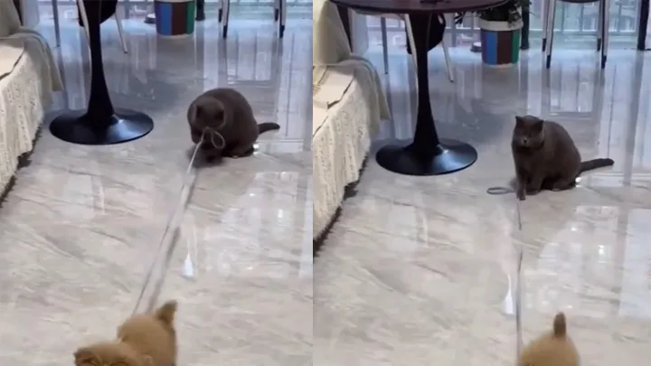 «Ну-ка, стоять»: кот стал нянькой для щенка-непоседы, и это безумно мило