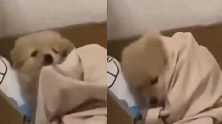 «А ты иди на работу»: отказавшийся вставать с кровати щенок умилит любого