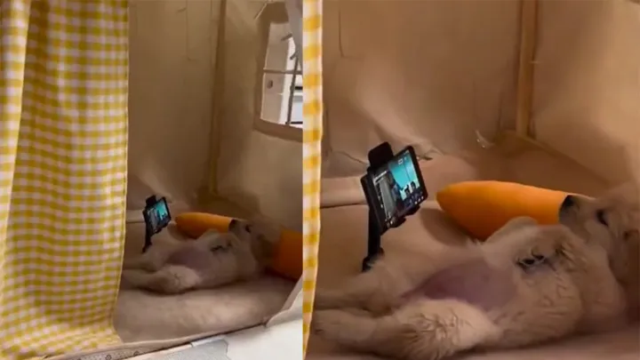 Пушистый сибарит устроил себе идеальный отдых с мультиками и закусками
