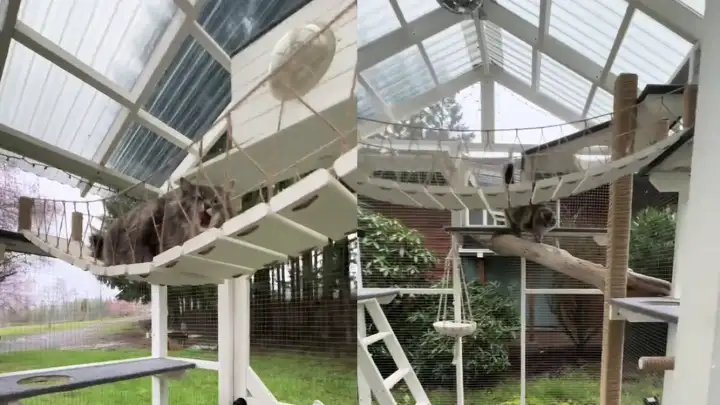 Любящие хозяева организовали своему коту площадку развлечений на свежем воздухе Еще и с отдельным выходом из дома.