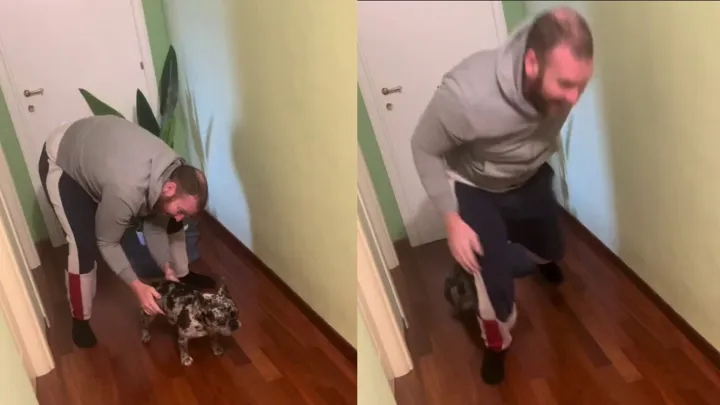 Подлый хозяин обманул песика в забеге, из-за чего тот был сильно возмущен Забег у песеля совсем не задался.Случилась несправедливость: котейка победил в забеге, но остался без выигрыша Снова все лавры этим кожаным.