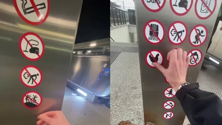Парень две недели устанавливал свои уморительные запреты в общественном месте Шутник клеил стикеры с комичными запретами на эскалатор.
