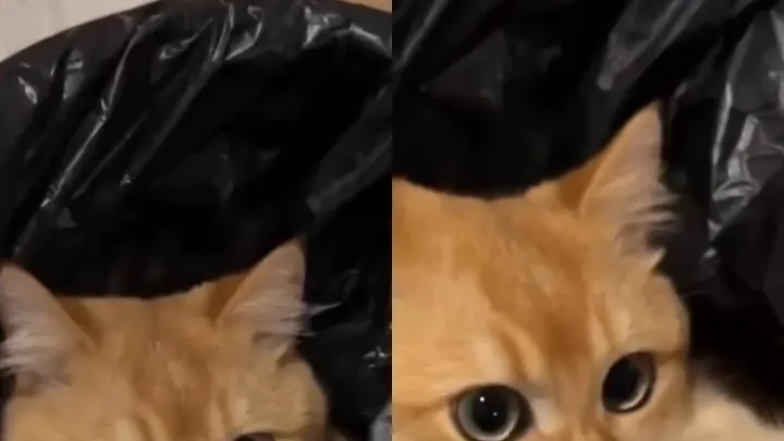 Наглый котик занял мусорное ведро и не увидел в этом ничего такого Странный выбор, но по-кошачьи уютный.