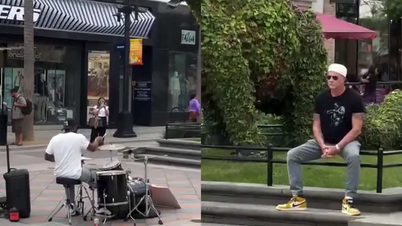 Уличный барабанщик не подозревает, что играет хит RHCP прямо перед их барабанщиком Чэдом Смитом. Увлеченное исполнение музыканта привлекает внимание прохожих, но сам он даже не осознает, что прямо напротив него сидит оригинальный исполнитель.