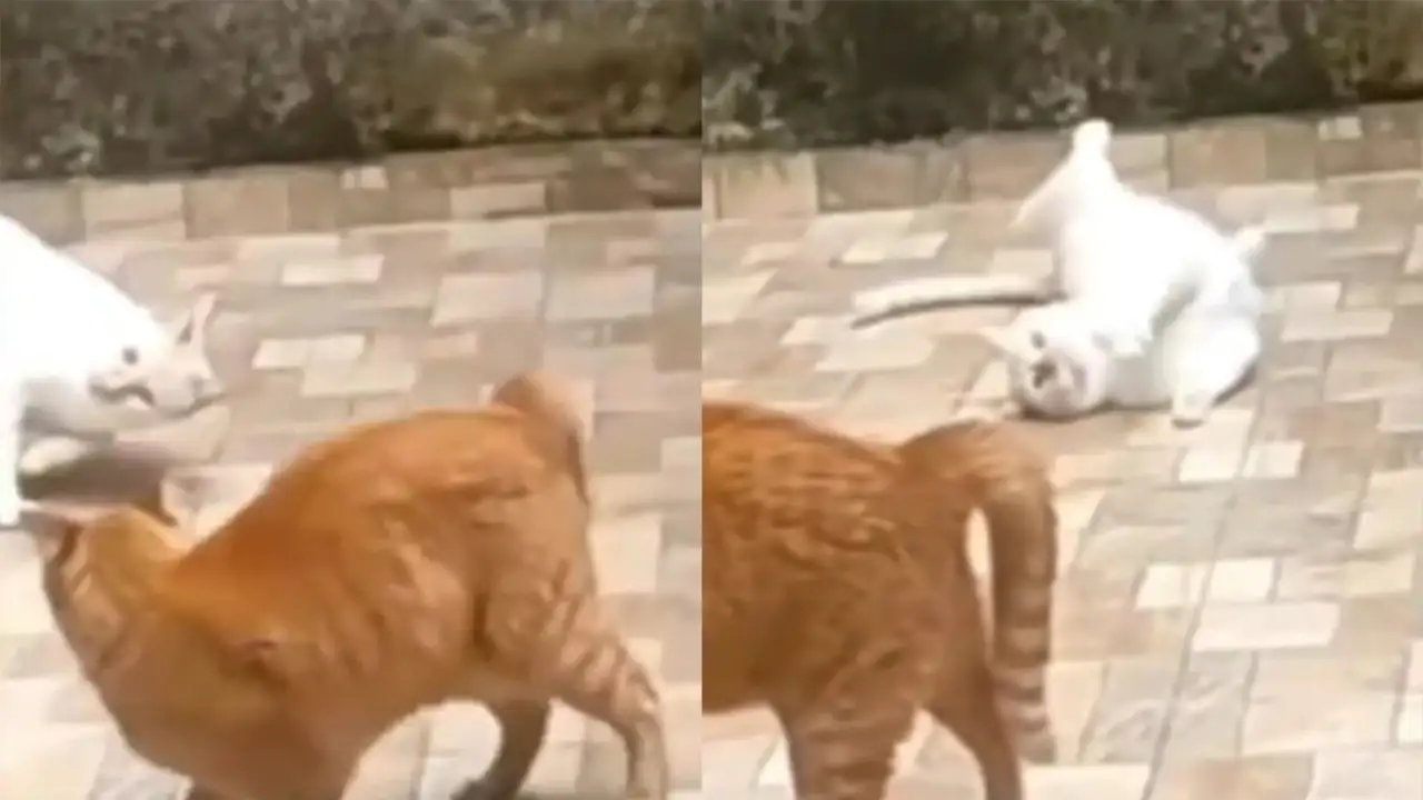 Два пушистых актера из этого видео разыграли драму с нулевым бюджетом и стопроцентной самоотдачей. Рыжий комок шерсти вылетел из-за угла с грацией разъяренного торнадо, но вместо атаки замер в нескольких сантиметрах от противника. Второй кот, в свою очередь, с воплощением трагедии шекспировского масштаба упал на спину, будто получил нокаутирующий удар невидимым кулаком судьбы.