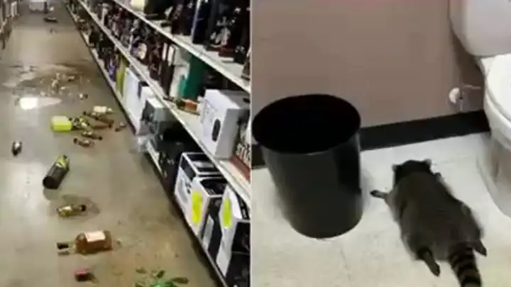 Енот проник в алкомаркет Вирджинии, напился, устроил погром и уснул в туалете