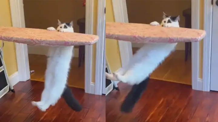 «Спорт — это жизь!»: кот превратил гладильную доску в спортивный снаряд