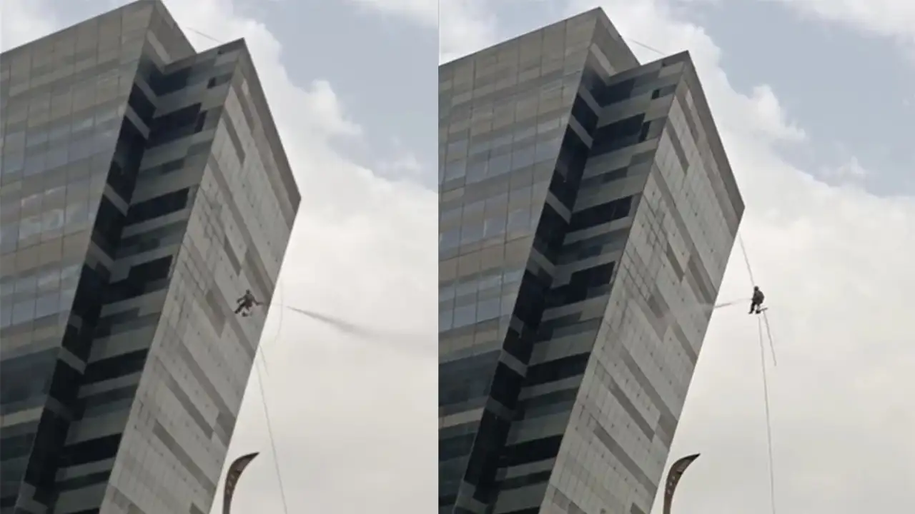 Некоторые люди только мечтают о том, чтобы заняться на работе чем-то действительно увлекательным, а герой этого видео уже воплотил мечту в реальность. В Катаре мойщик окон устроил себе персональный аттракцион на высоте — вместо того чтобы уныло ползать по стеклам, он стал весело раскачиваться, используя струю воды из шланга.
