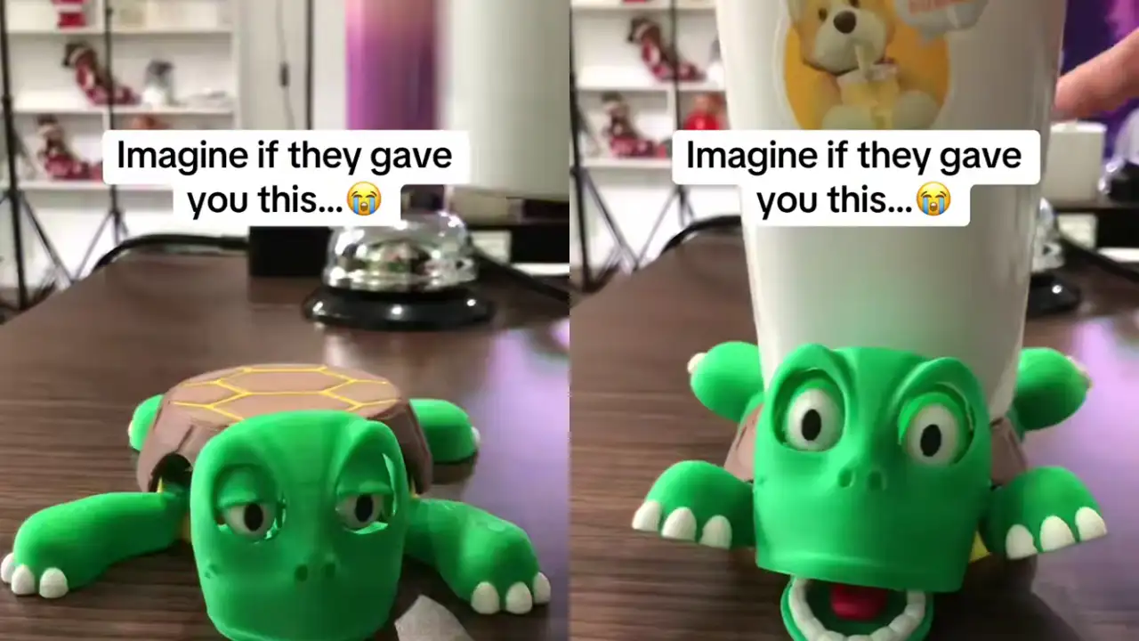 В Сети завирусился смешной ролик с подстаканником-черепахой, которая оказывается в шоке от того, что ее придавили бокалом. Непонимание ситуации на ее лице вызывает смех у зрителей.