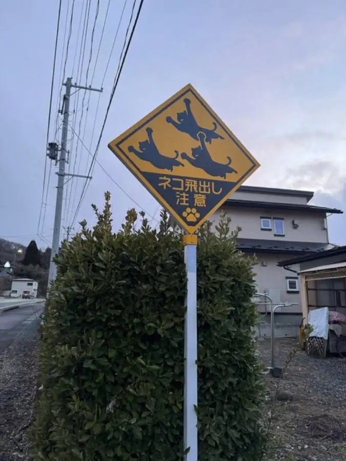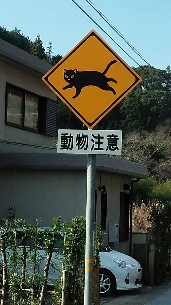 В некоторых японских районах устанавливаются специальные знаки, предупреждающие о возможном появлении кошек на дороге. Зрители увидят различные варианты этих знаков: от милых изображений с одним или несколькими котиками до забавных надписей.