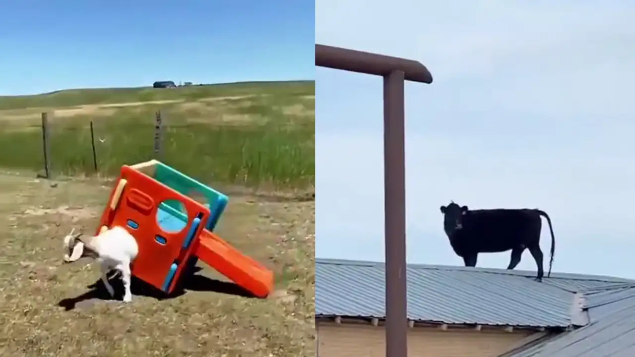 В этом ролике козы и коровы становятся звездами видео, попадая в самые смешные ситуации. Они забавно ведут себя: прыгают, дерутся или застревают в неожиданных местах.