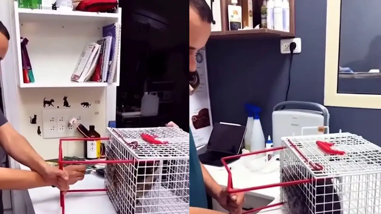 Ветеринарные специалисты продемонстрировали в действии особую клетку-давилку, известную как Crush Cage. Это приспособление разработано специально для безопасной вакцинации особенно непослушных и агрессивных котиков, которые категорически отказываются идти на контакт и никак не даются в руки.